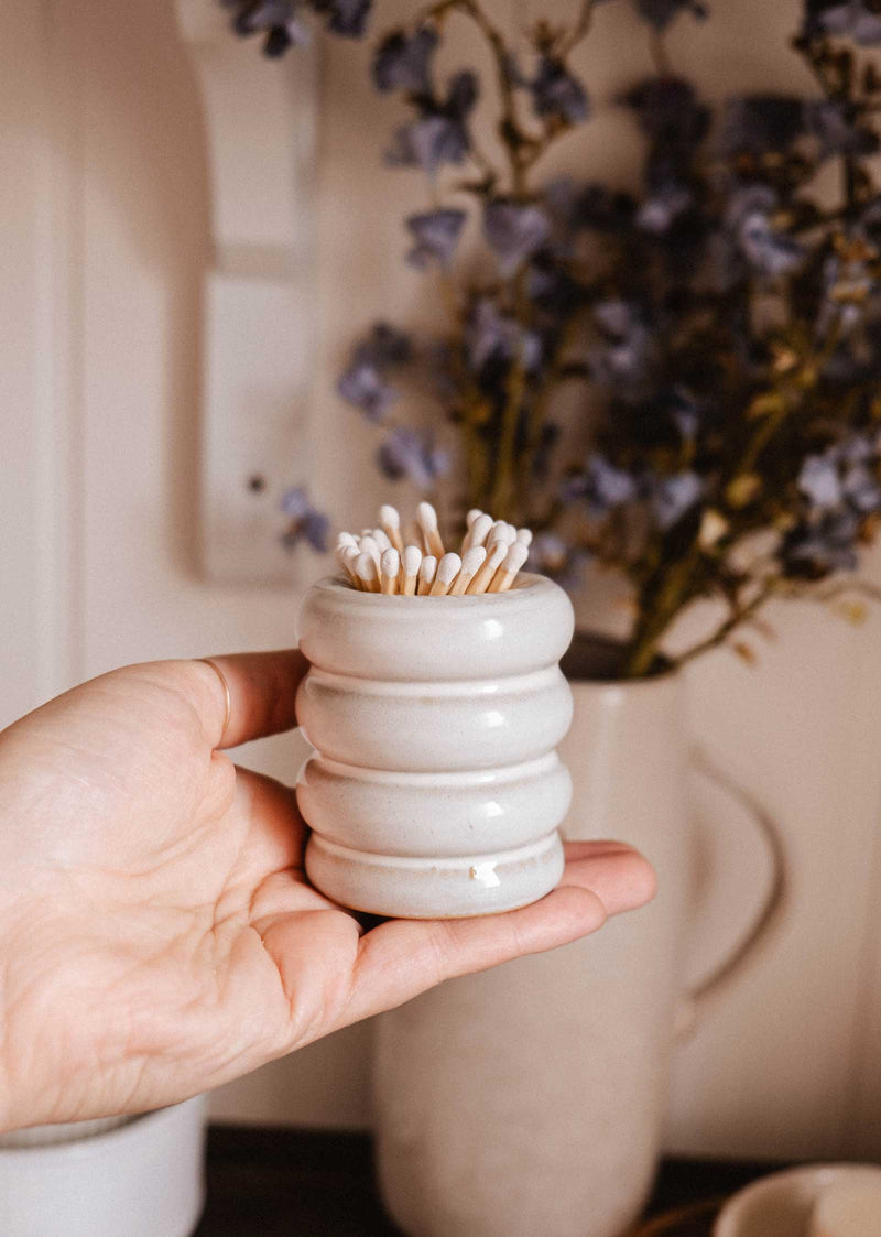 - This matches holder is decorative but also very multi-functional (think mini vase/incense holder/toothpick holder/Q-tip holder).