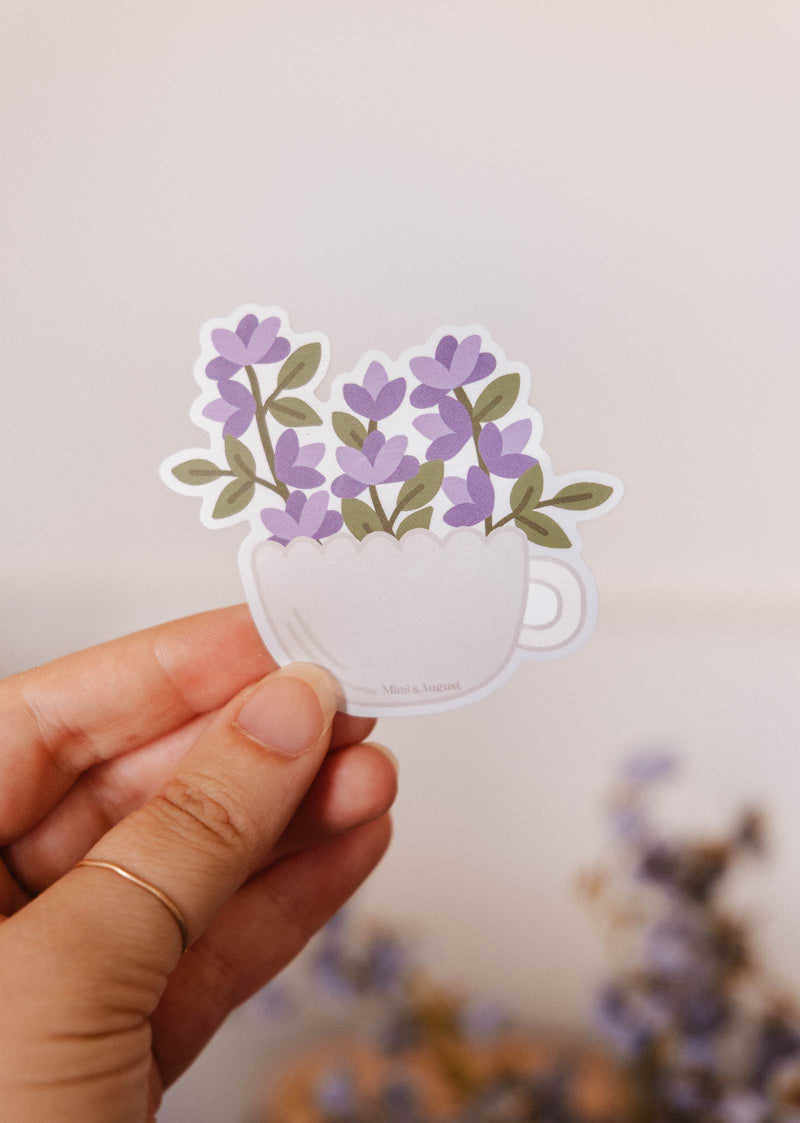 This adorable vinyl sticker features a warm white teacup filled with delicate purple blooms. Whether you're decorating your laptop, notebook, water bottle, or planner, Bloom Cup brings a soft and peaceful touch to any surface. Durable, water-resistant, and made to last, just like your love for cute stationery.