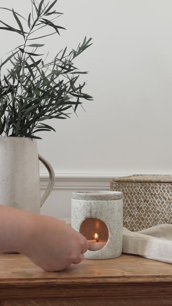 Bring a cozy and soothing atmosphere to your home with our Ceramic Aromatic Diffuser. Beautiful and functional, this 10 cm tall and 9 cm wide diffuser works perfectly with any standard tealight. Its versatility lets you use it with wax melts or a few drops of your favorite scented oil.